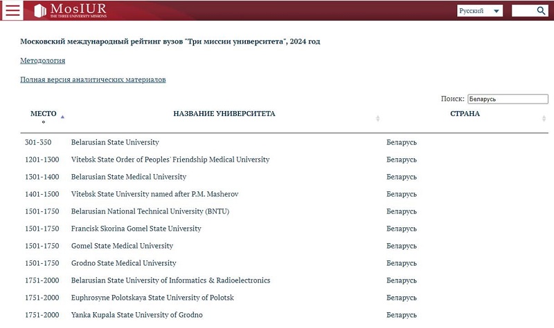 БГУ улучшил свою позицию в Московском международном рейтинге вузов (MosIUR) – говорят, что благодаря иностранцам и олимпиадам.