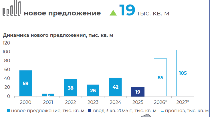 В 2025 году в столице построили несколько новых бизнес-центров, что увеличило и без того избыточное предложение офисов. В следующем году ожидается еще больше новых площадей.
