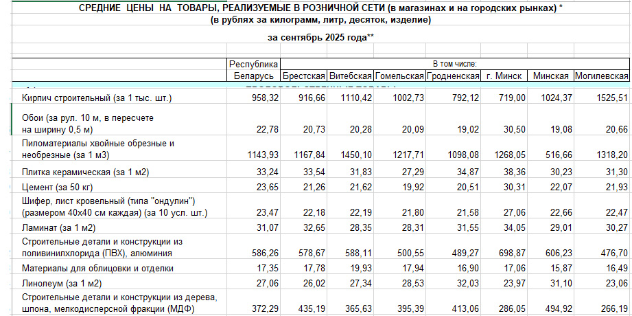Белстат ежемесячно публикует средние цены на базовые товары – мы сравнили, сколько в сентябре стоили строительные и отделочные материалы в столице и провинциях.