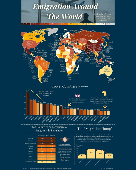 В глобальном масштабе лидерами по числу граждан, проживающих за границей, остаются Индия (18.5 млн), Китай (11.7 млн) и Мексика (11.6 млн).